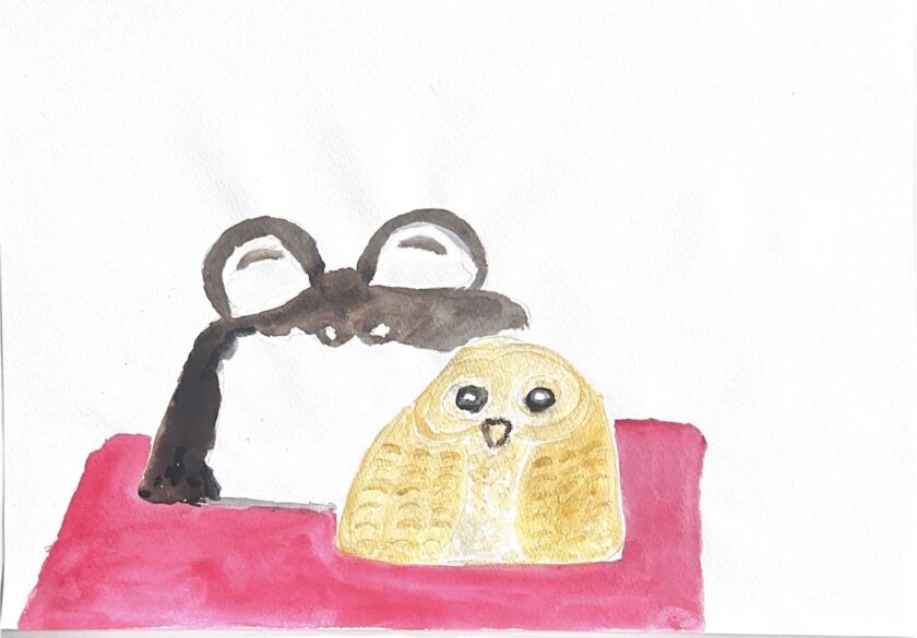 カエルとフクロウの置物